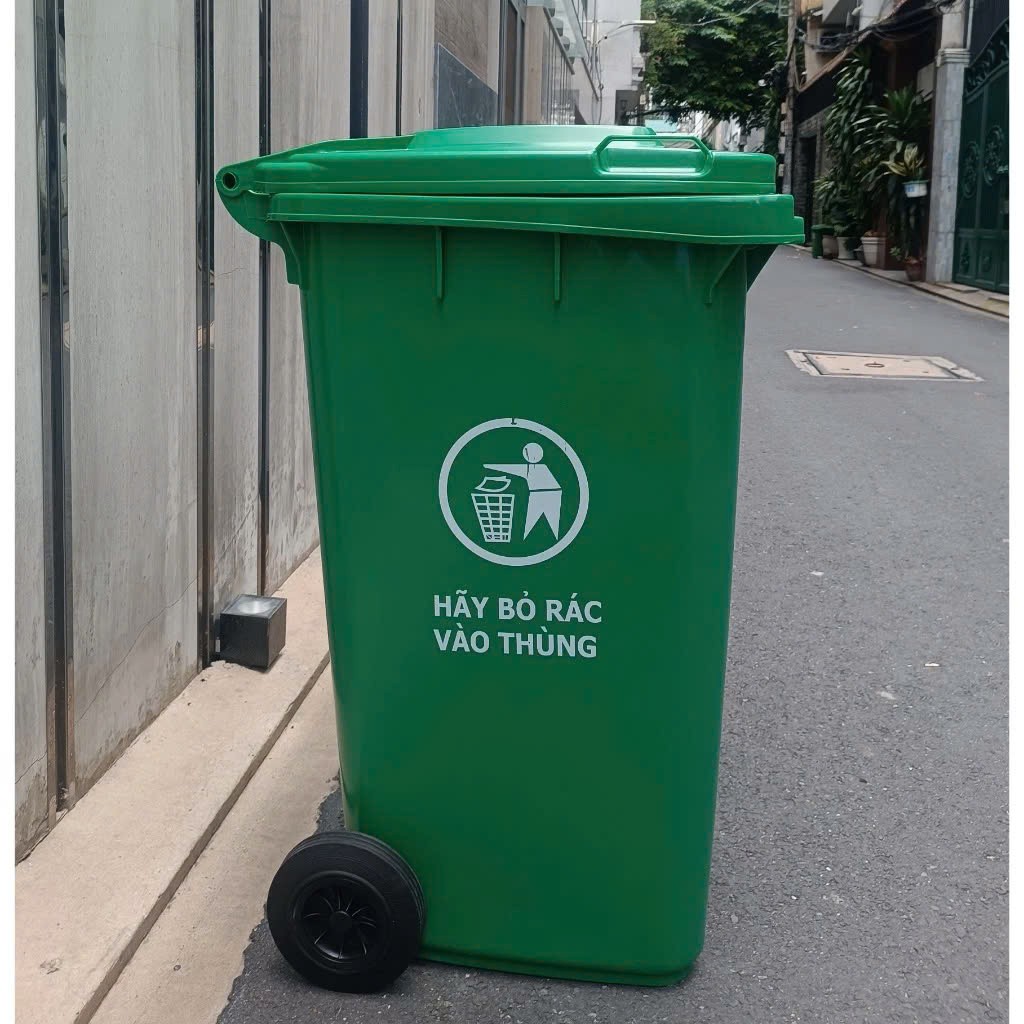 - Thùng rác nhựa 240 lít, có 02 bánh xe, nắp kín
